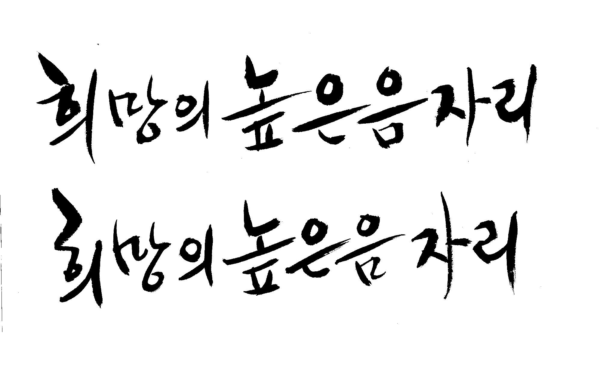 저도 캘리좀부탁이요 ^^;; 김철호 일반 0 6638 2009.01.14 10:59 > > > > > 희망의 높은음자리 > > > > 감사합니다 ^^ 꼭부탁드려욧 ㅎㅎㅎ > > > > 좋은 글이라서 신경썼는데 > 만족할 만큼 않나왔네요.. > 유용하게 쓰시길... >