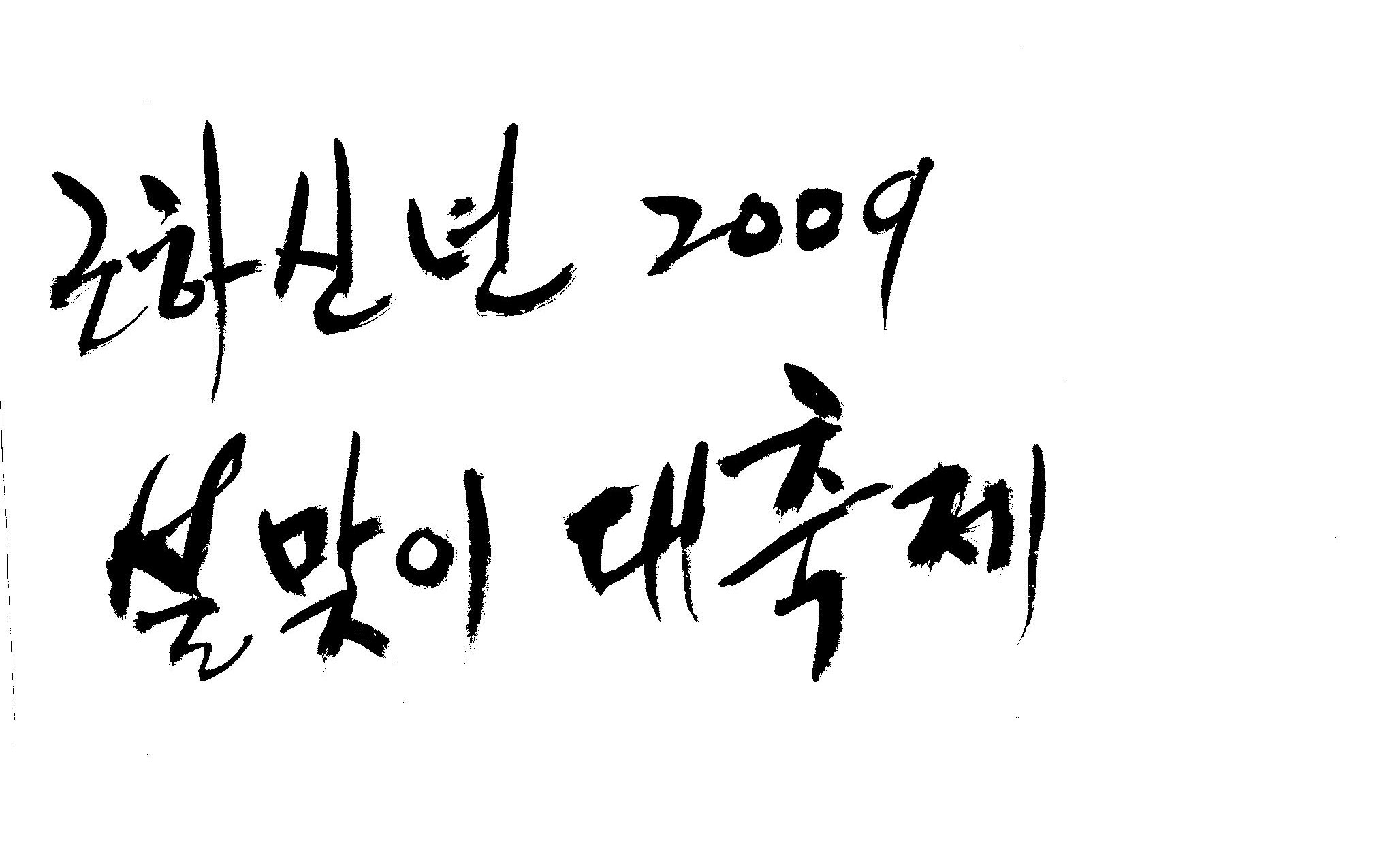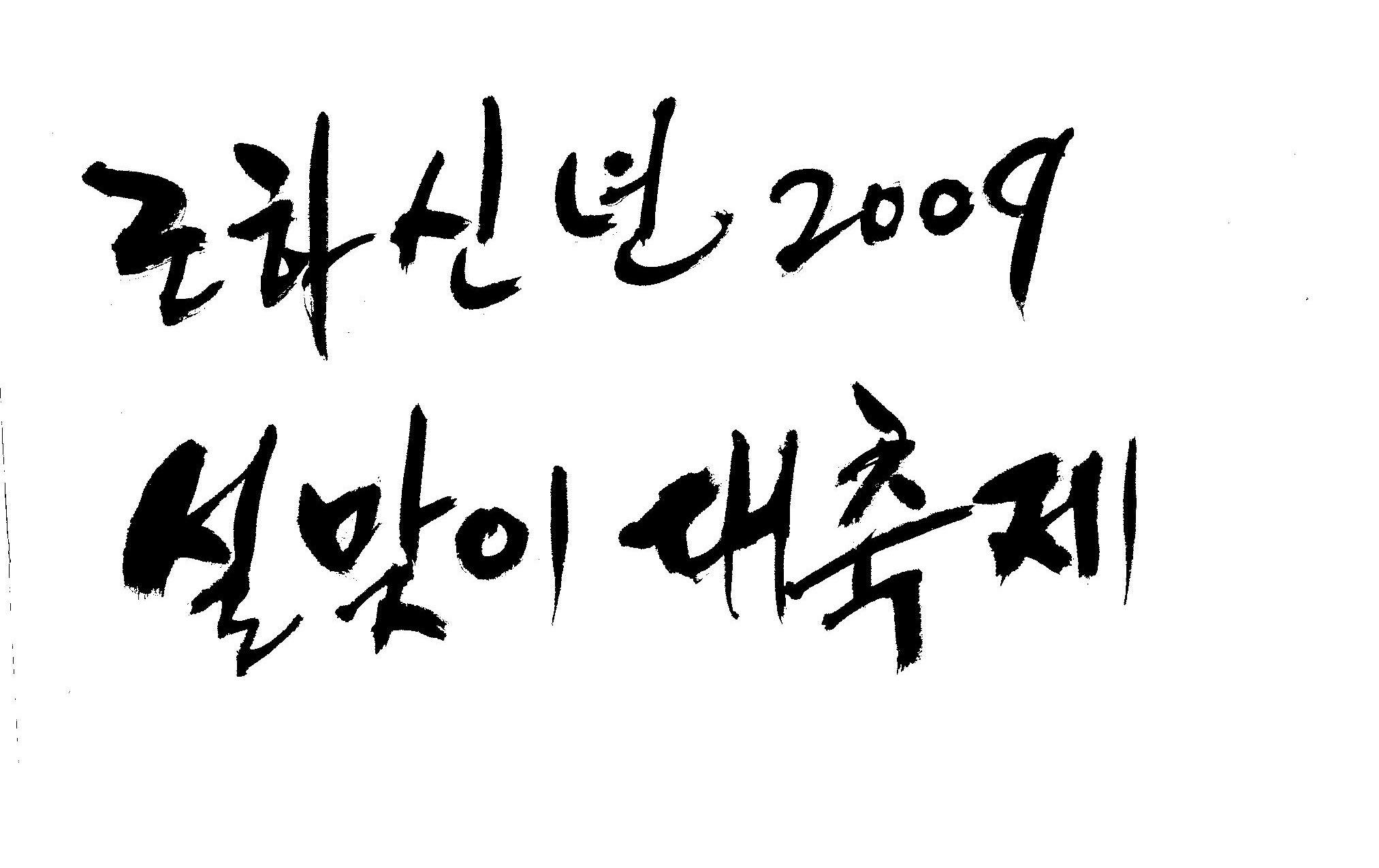 근하신년 2009 설맞이대축제 캘리 부탁드려요. 김철호 일반 3 16723 2009.01.14 10:45 > > A3 전단지 타이틀로 쓰려고 하는데요. > > ''근하신년 2009 설맞이대축제'' 캘리 부탁드립니다. > > 많은도움이 되주셔서 감사합니다. > > 유용하게 쓰세요..