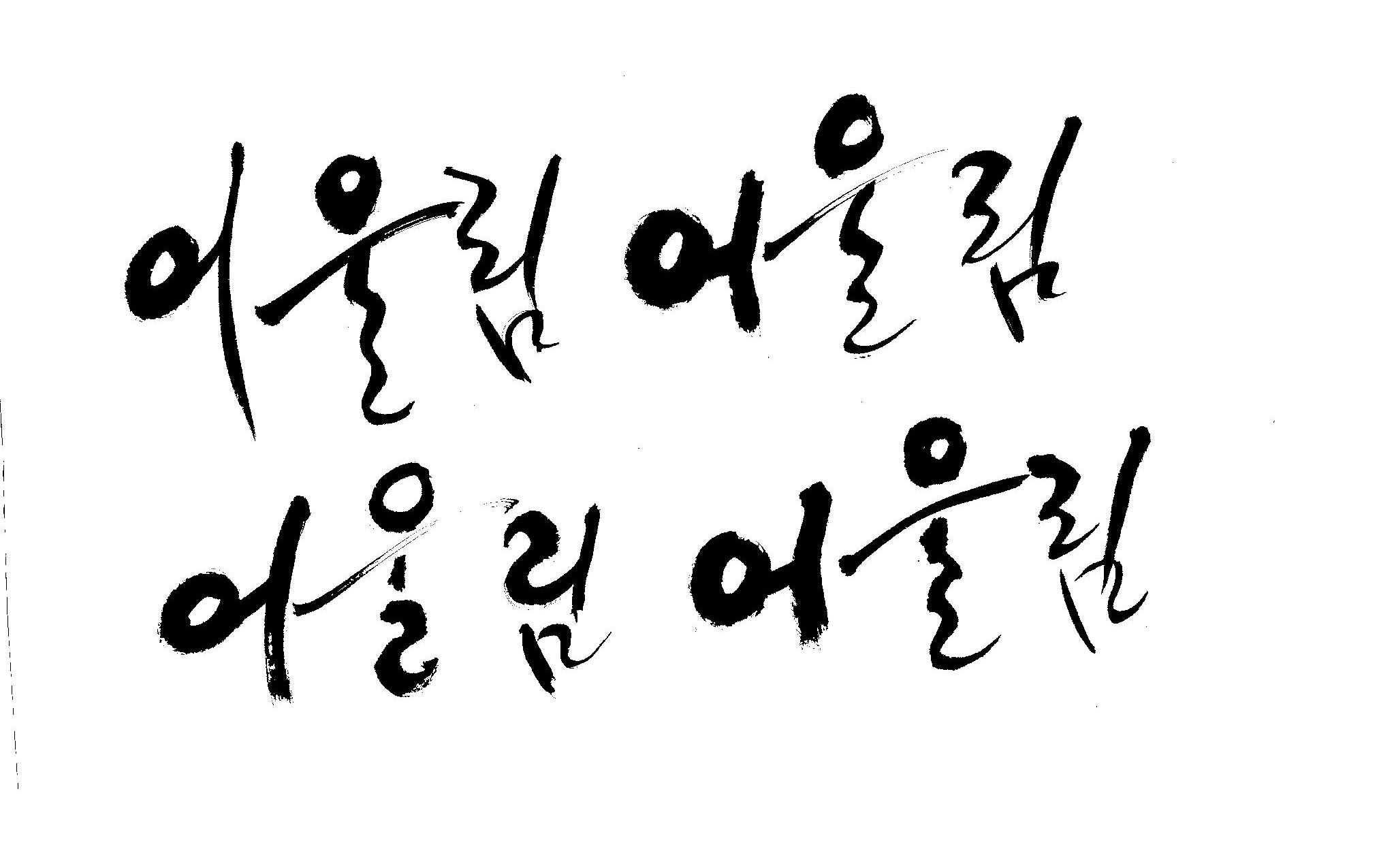 켈리 부탁좀 드릴께요~ 김철호 일반 0 11413 2009.01.14 10:49 > > > > > 책표지에 나갈 글씨로 '어울림'이란 켈리를 쓰고싶은데요... > > 도와주세요~ > > > 좋은 글이라서... > 긴....습작시간이 있었지만 > 결과물이 왜소하네요 > 유용하게 쓰시길... >