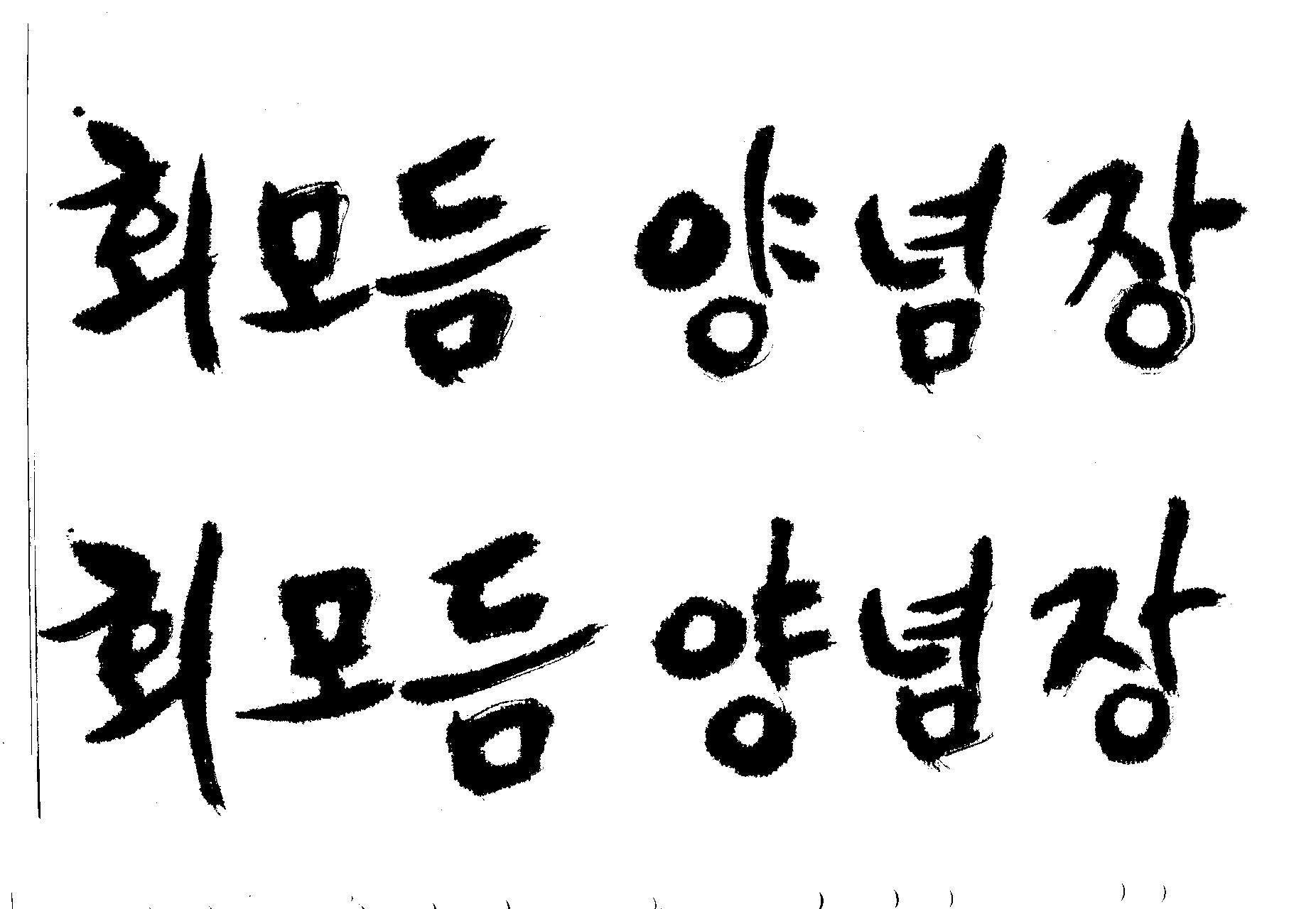 캘리 요청] 부탁드립니다. 김철호 일반 1 6254 2009.06.03 12:13 > > 첨부한 이미지에 보이시는 캘리와 유사한 형태로 > 부탁드립니다. > 내용은 " 회모듬 양념장 " 입니다. > > 도와주십시오. (__ ) > 유용하게 쓰세요..