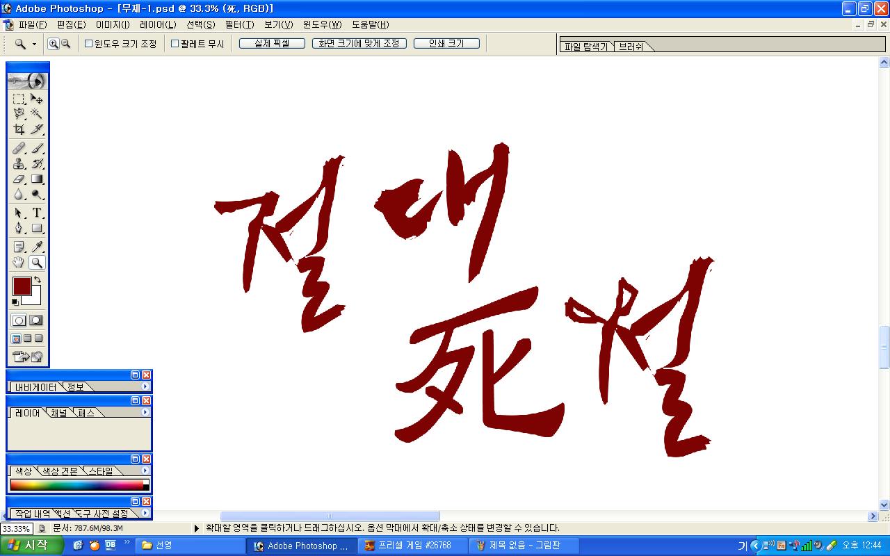정중히 캘리 부탁드립니다. -_- 류재철 일반 0 6031 2009.11.16 11:18 실력자 분들이 많이 계셔서 이렇게 염치없게 부탁드립니다. - 절대死절 : 첨부한 파일 참고해주시면 감사하겠습니다.(약간 거친느낌? ^^;;) : '절'자의 ㅈ은 가위로...^^;; : 포스터 제작용이라 ai 파일이 필요합니다. 대학동아리 연극공연 포스터로 쓸 예정입니다. 비상업적인 공연이라 이렇게 부탁드립니다.